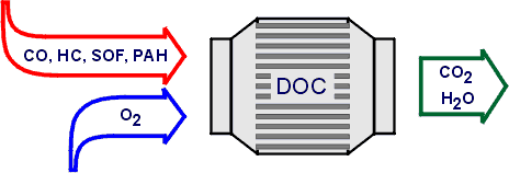 将尾气中NO转换为 NO2,生成强氧化剂,用于DPF再生。氧化(燃烧)进入DOC内的碳氢化合物(柴油),产生热量,为DPF再生提供高温环境氧化发动机燃烧排出的HC化合物。