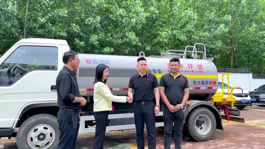 为提升随县农村生态环境、人居环境与发展环境并展现企业责任担当,凯力汽车集团捐赠给随县环潭镇大碑店村一台崭新的洒水车。此事登上随州市电视台《随州新闻》栏目。