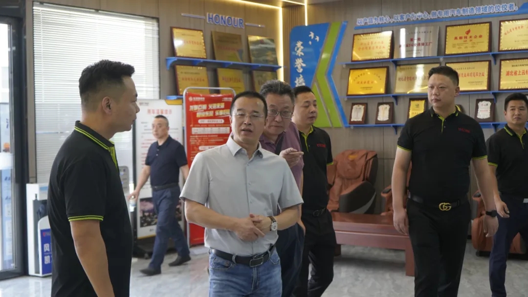 湖北省十堰市茅箭区区委常委吴杰鹏一行领导莅临凯力汽车集团参观考察,深入了解凯力汽车集团的智能化制造实力。