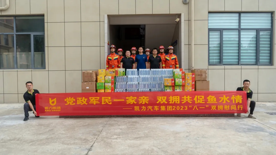 凯力汽车集团在八一建军节来临之际为高新区消防救援大队、随州市公安局高新区分局消防战士及公安民警送出解暑凉茶、西瓜、矿泉水等解暑降温慰问物品,充分体现凯力汽车集团的企业责任担当与随州市警民一家亲的良好氛围。