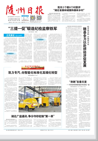随州日报以《凯力专汽:向智能化标准化高端化转型》为题进行头版报道。