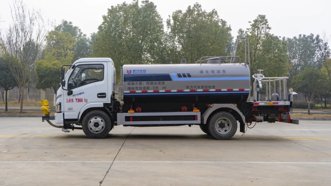 凯力风新能源洒水车延续了凯力一贯的经典风格。整车标准化生产,罐体采用自动流水线生产,下料、拼板自动焊、封头旋压成型、罐体一次包罐成型、环形自动焊等国内先进生产工艺。
