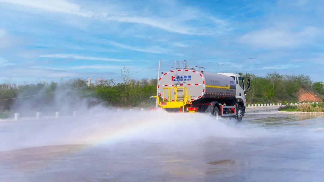东风D9绿化喷洒车产品简介凯力风东风D9洒水车是湖北凯力专用汽车有限公司自主研发设计的第4代环卫装备,性能达世界领先水平,年产销超10000台。标配前冲、后洒、侧喷等,还可选装高压水炮、消防接口等,适