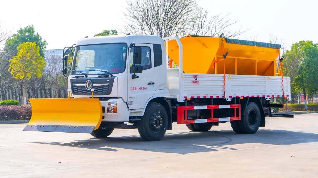 春夏秋冬都能用凯力风环境清洗系列可除雪、融雪、扫雪等加装除雪铲、扫雪滚刷和融雪撒布机低平板货车+除雪功能功能多样东风天锦除雪车该车采用东风天锦底盘,配备康机 230 马力发动机及 8 档变速箱,轴距