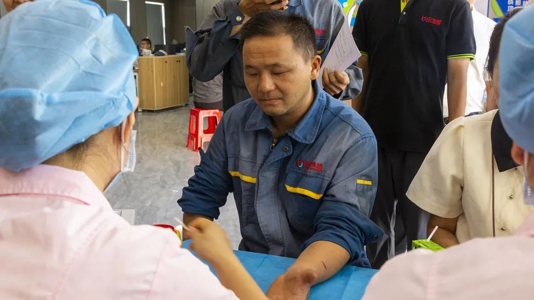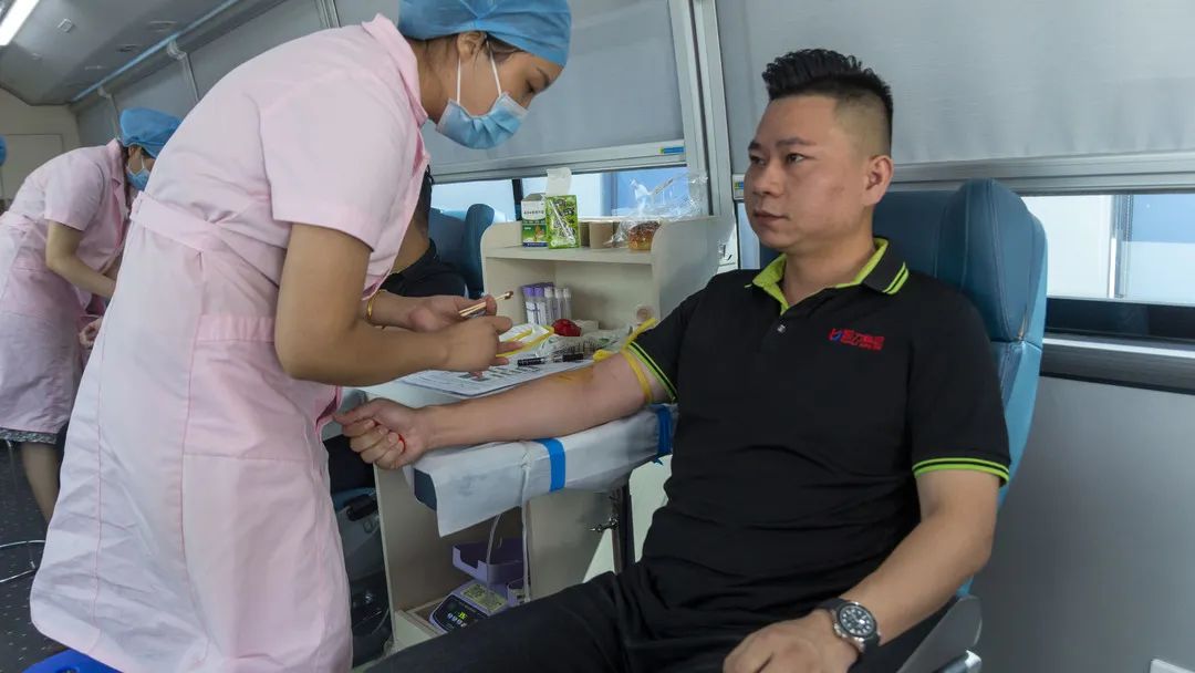 此次活动得到了集团各部室、各子公司的大力支持。大家得到消息后纷纷在第一时间报名参加。早上8点30分采血车刚到,已有不少献血职工在现场撸着袖子等候献血。扫码、登记、体检、血液检测等采血前的工作秩序井然。