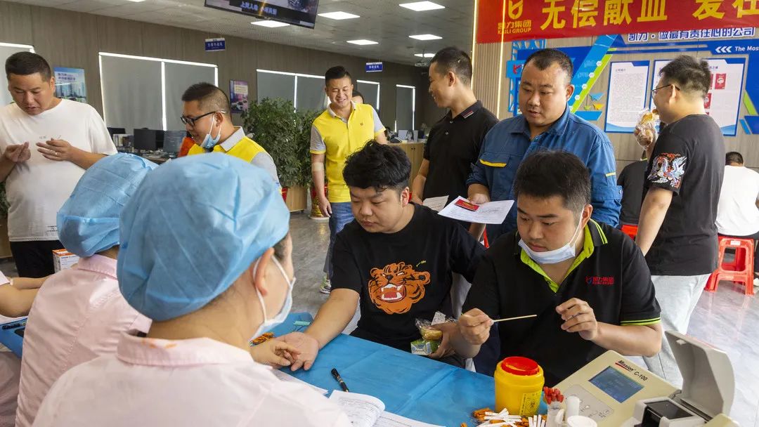 在献血现场,到处洋溢着温暖,四处流淌着感动。集团公司党员干部、生产一线班长、骨干模范带头,积极加入到献血队伍中,“捐献一份鲜血,奉献一份爱心”成为凯力人广为传递的爱心音符。在本次无偿献血活动中既有献血多次的“老将”,也有初次上阵的“新兵”,他们用实际行动诠释了凯力大爱精神,传递着热心公益、乐于奉献的社会正能量。公司市场部服务部黄成每年都积极参加无偿献血。他说:“无偿献血不只是献出自己的一份爱心,更是我们的一种义务和责任,科学献血有助于人体的新陈代谢,有益身心健康,又能支持社会公益事业。很高兴可以用这种特殊方式帮助到他人,只要在身体条件允许的情况下,我会继续坚持每年无偿献血,能够为他人献爱心,为更多人点燃生命的希望,我感到很光荣。”生产管理部一线生产工人梁柱已经是第三次参加义务献血活动了,这次又献了400毫升。他边采血边告诉笔者说:“义务献血已经成为公司的一个优良传统,我们每年都在参加,每次各项检查指标都合格,感觉很有成就感,通过自己的一份爱心为生命接力,是一件十分有意义的事。”