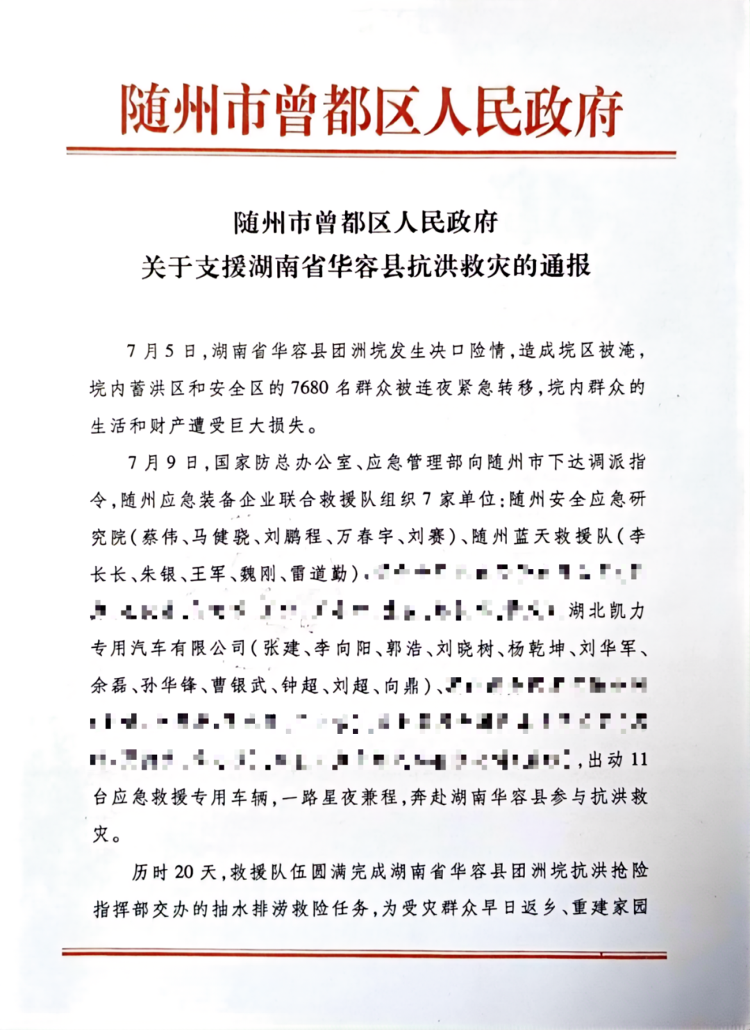 近日,凯力汽车集团举办了一场意义非凡的岳阳文旅感恩卡发放仪式,发放对象为凯力汽车集团参加湖南岳阳抗洪救灾的凯力应急救援分队的12名队员,感谢他们在岳阳抗洪救灾期间,圆满完成抽水排涝救险任务,为受灾群众早日返乡、重建家园奠定坚实基础。充分展现了凯力应急救援分队的专业救援水平和顽强过硬的作风以及非凡的拼搏精神,成为众人敬仰的榜样。