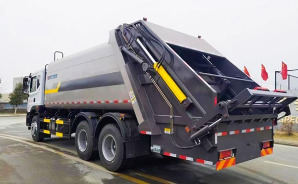 该款压缩式垃圾车外形简洁、美观大方,性能优良,操控先进,为市面上最实用、最受欢迎的垃圾压缩转运产品。上装部分由密封压缩箱体、填装器、推铲、液压传动系统和电气控制系统组成,采用了久经市场检验的液压传动、电气控制和双向压缩技术,通过自动化控制系统,实现垃圾的倾倒、强力挤压、双向施压装填,具有压力大、密封性好、操作方便、安全稳定等优点,主要适用于市政环卫、企业工厂、建筑工地、小区物业、机关院校等地方生活垃圾的收集和转运。