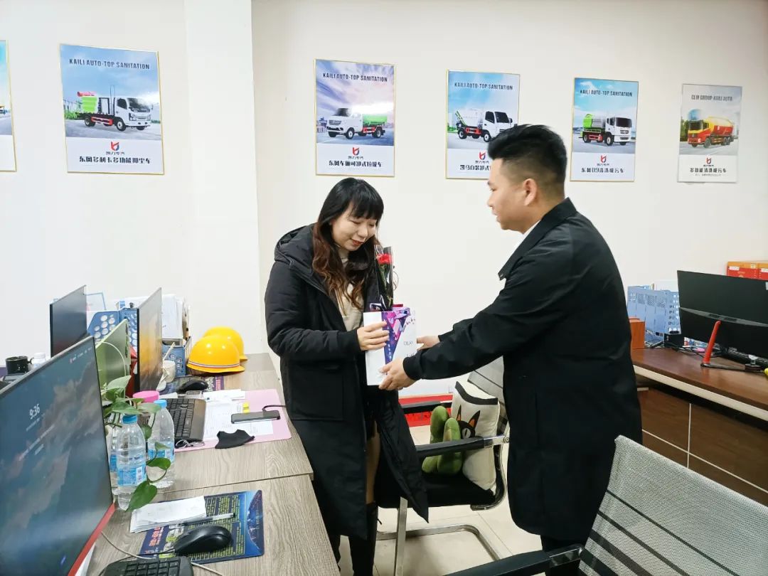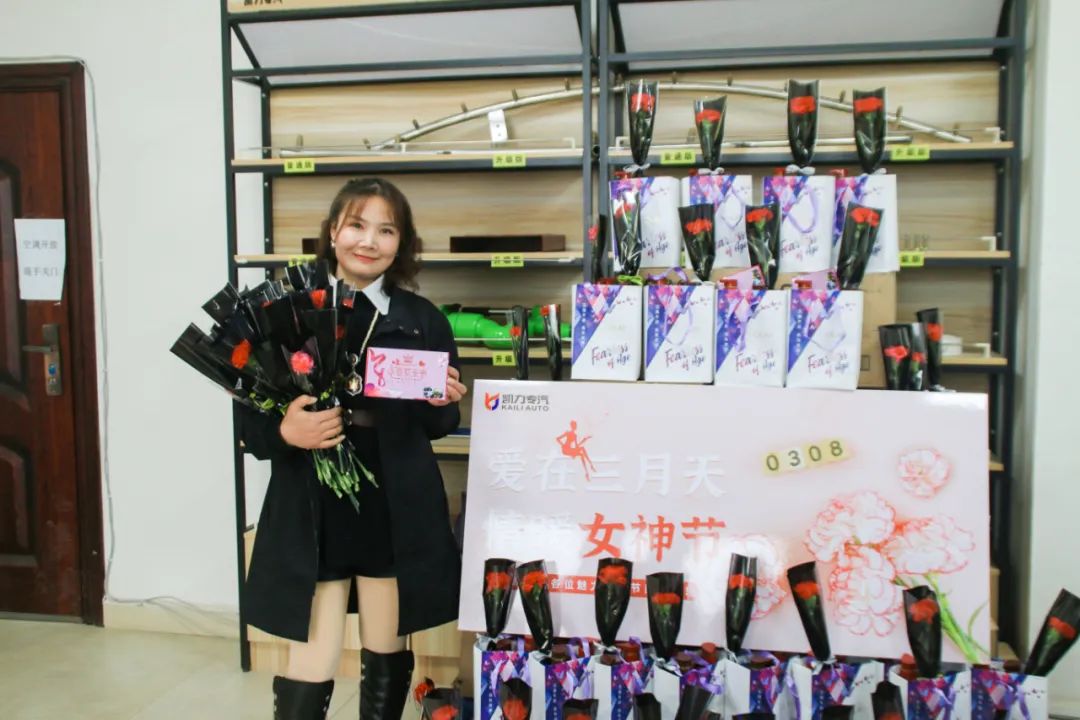 一张张精美的贺卡,一枝枝芬芳的康乃馨,一句句暖心的话语,传递着公司对女职工的关爱之情,女职工们收获的不仅仅是鲜花,更多的是感动。她们纷纷表示:今年“三八”节过得特别有意义,值得回味,十分感谢公司对女职工的关爱。在今后的工作中,将一如既往、再接再厉,以更加饱满的精神和更加昂扬的斗志投入到工作中去,继续为凯力专汽的发展贡献自己的力量与智慧。当贴心的祝福、芬芳的鲜花和女职工们的笑脸融汇在一起,浓浓的大家庭般的温暖之情油然而生。