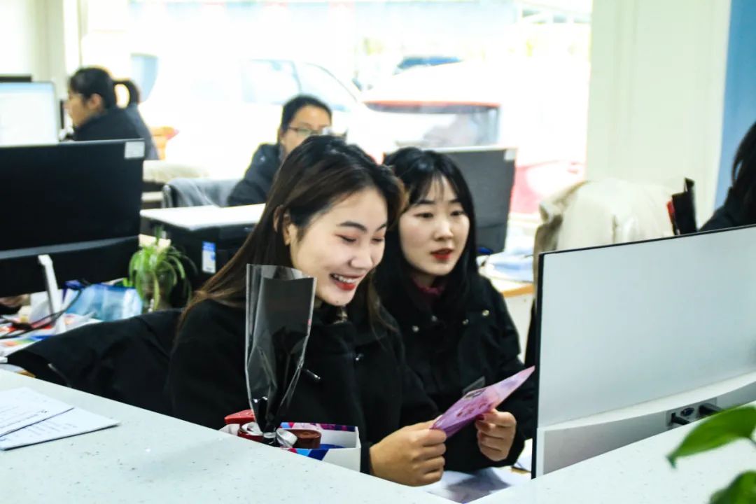 公司现有女职工186名,为了让女职工们能够度过一个快乐温馨的节日,公司提前为全体女职工精心准备了鲜花礼品和精美贺卡。在节日当天,总经理梁俊、副总经理马龙带领班子成员与科室负责人一行走进各处室将鲜花和祝福贺卡送给正在岗位上忙碌的女职工们,体现了公司对女职工的关心和问候,感谢她们为公司快速、稳健发展而付出的辛勤劳动,同时向她们表达了美好的祝愿。