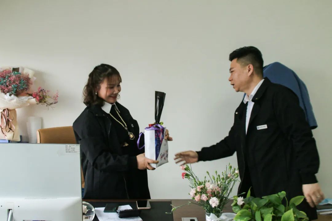 阳春三月,微风拂面。迎来了一年一度的三八国际劳动妇女节,为了构建和谐的企业文化,彰显企业人文关怀之情,3月8日上午,总经理梁俊为全体女职工送上精美的礼品和节日的祝福,感谢女神们的辛勤工作,并祝愿她们节日快乐。