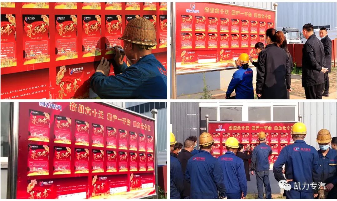 各班组长在宣誓板上签下承诺书,誓言团结拼搏、精益求精,力求目标达成。
