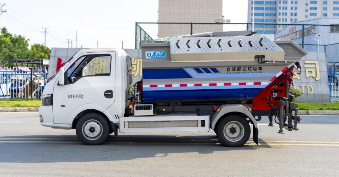 凯力风小神童自装卸式垃圾车,可上绿牌,车身小巧、静音环保,续航里程达115km。液压推板、装料更多。优质液压、稳定可靠。操作简单、便于维修。