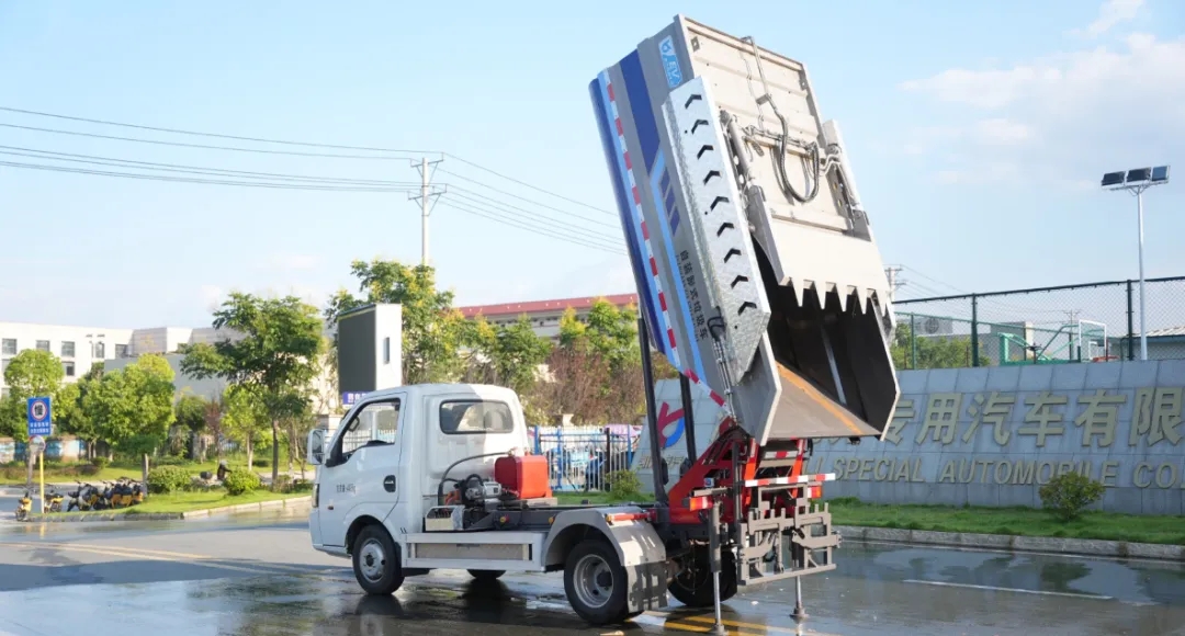 底盘换电动,上装升级,三电系统稳定可靠。刮板进料、压缩率高。举升自卸、卸料干净。翻桶机构、进料快捷。自动化高,电液联合。